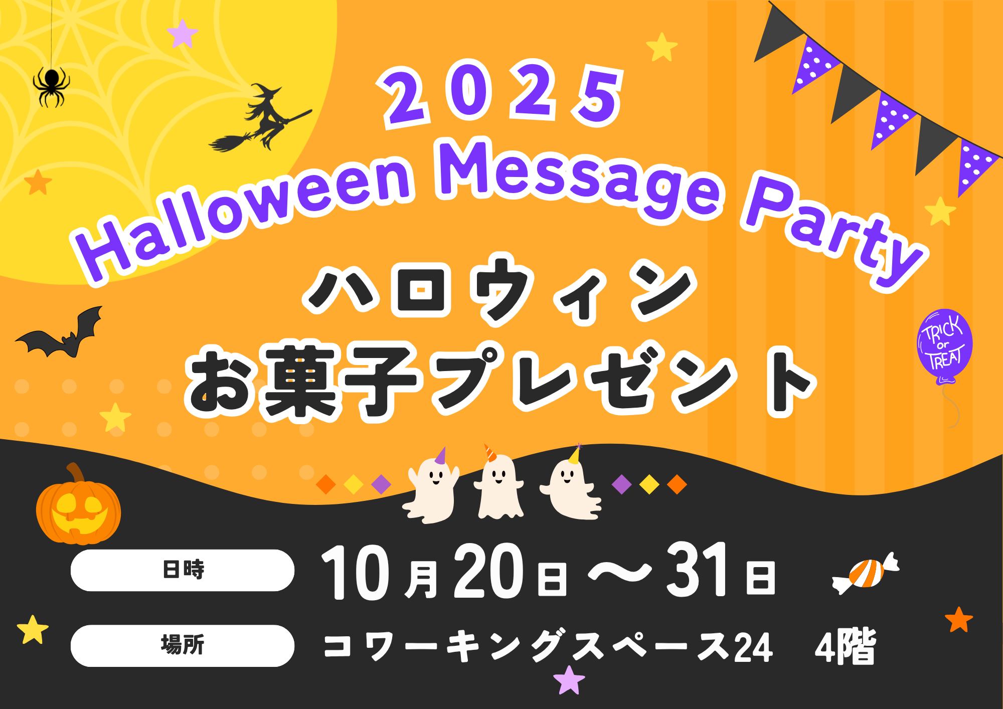 🎃 Leave a Message, Take a Treat! 👻 コワーキングスペース24では、店内がかわいいハロウィン仕様に変身中です✨ 10月20日(月)~10月31 […]